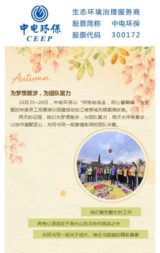 中電環(huán)保股份有限公司是南京市首家環(huán)保上市公司(股票簡(jiǎn)稱(chēng):中電環(huán)保,股票代碼:300172),南京環(huán)保產(chǎn)業(yè)協(xié)會(huì )會(huì )長(cháng)單位,國家級聯(lián)盟理事長(cháng)單位,是生態(tài)環(huán)境治理服務(wù)商,主營(yíng)(3+1):水務(wù)、固危廢、煙氣治理及產(chǎn)業(yè)創(chuàng )新平臺,包括:工業(yè)水處理、污水處理及水環(huán)境綜合治理;固危廢土壤、污泥餐廚垃圾處理;煙氣及VOCS治理;智慧環(huán)保;高端裝備等。